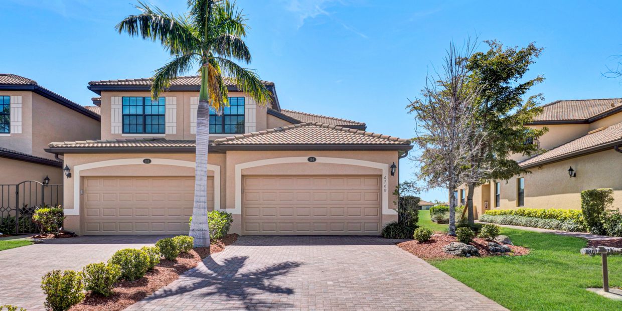 Step into sunlit sophistication with this gorgeous 4-year-old Contour model in the completely sold-out, resort-style 55+ community of Del Webb Lakewood Ranch—where luxury meets lifestyle and every detail sings. Set against peaceful water views and lush, manicured landscaping, this 1,400 sq ft home is both a serene retreat and an entertainer’s dream, welcoming you with a glass-paneled front door and flowing open-concept design.